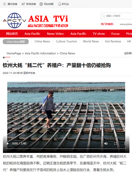 亚视中文台:钦州大蚝“蚝二代”养殖户:产量翻十倍仍被抢购
