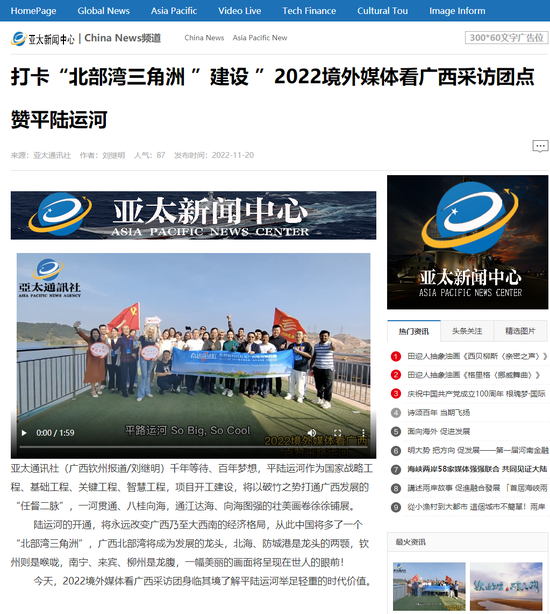 亚太通讯社:2022境外媒体看广西采访团点赞平陆运河