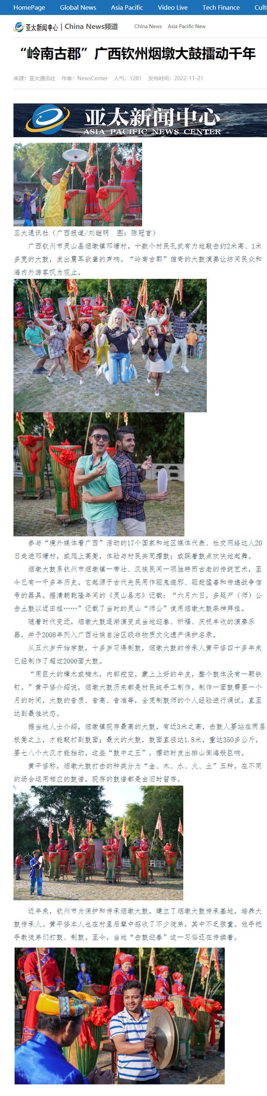 亚太通讯社:“岭南古郡”广西钦州烟墩大鼓擂动千年