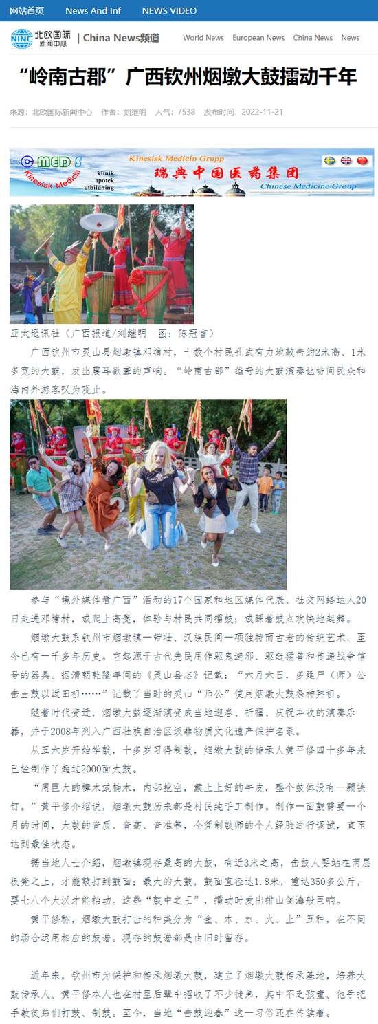北欧国际新闻中心:“岭南古郡”广西钦州烟墩大鼓擂动千年