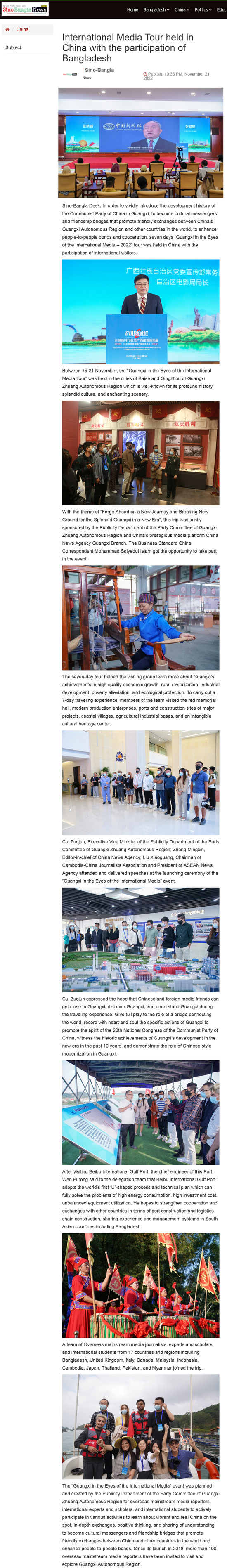 - Sino Bangla News:“2022境外媒体看广西”采访活动报道