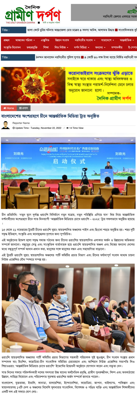 - THE DAILY GRAMEEN DARPAN:“2022境外媒体看广西”采访活动报道