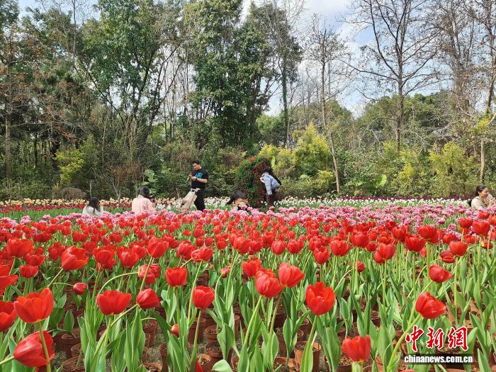 桂林訾洲郁金香盛放 花海迎春年味浓