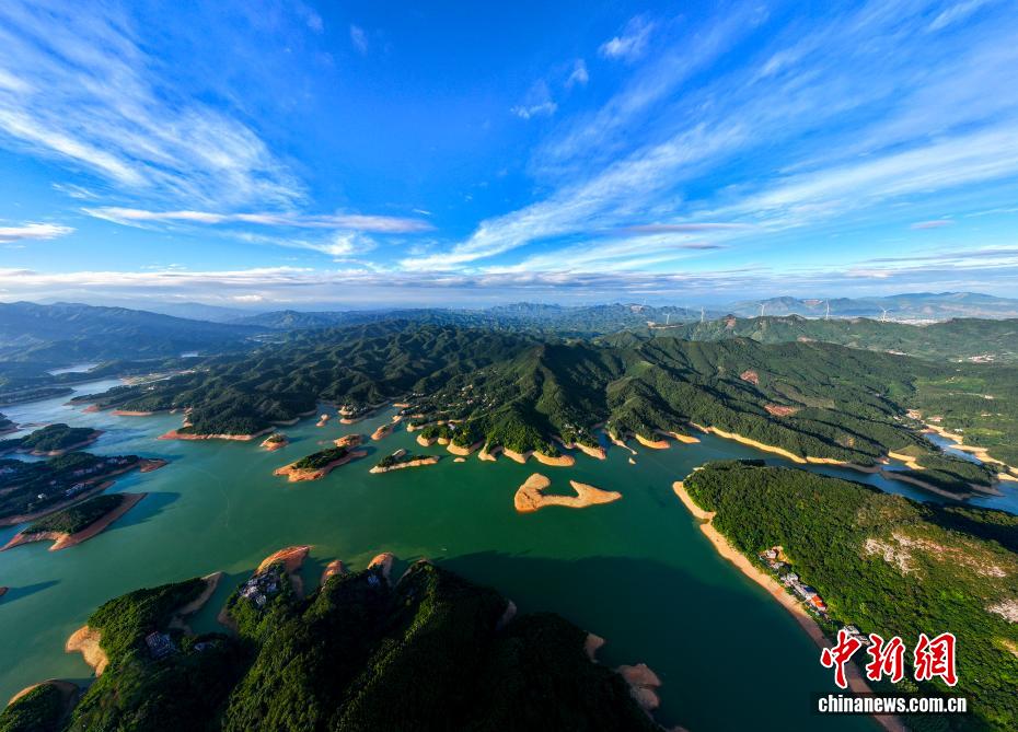 11月5日,广西南宁横州市西津国家湿地公园在秋日阳光的照映下,波光粼粼,湖水与黄绿色的树木相互映衬,构成一幅美丽的秋日画卷。……