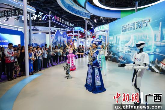 中新网广西新闻9月19日电 (宾艺苑)第22届中国—东盟博览会9月17日至21日在广西南宁举办。作为东道主城市,南宁以一场融合机器人参演、AI赋能、多维展示的科技人文盛宴,在南宁国际会展中心B2馆惊艳亮相,吸引众多海内外媒体聚焦。