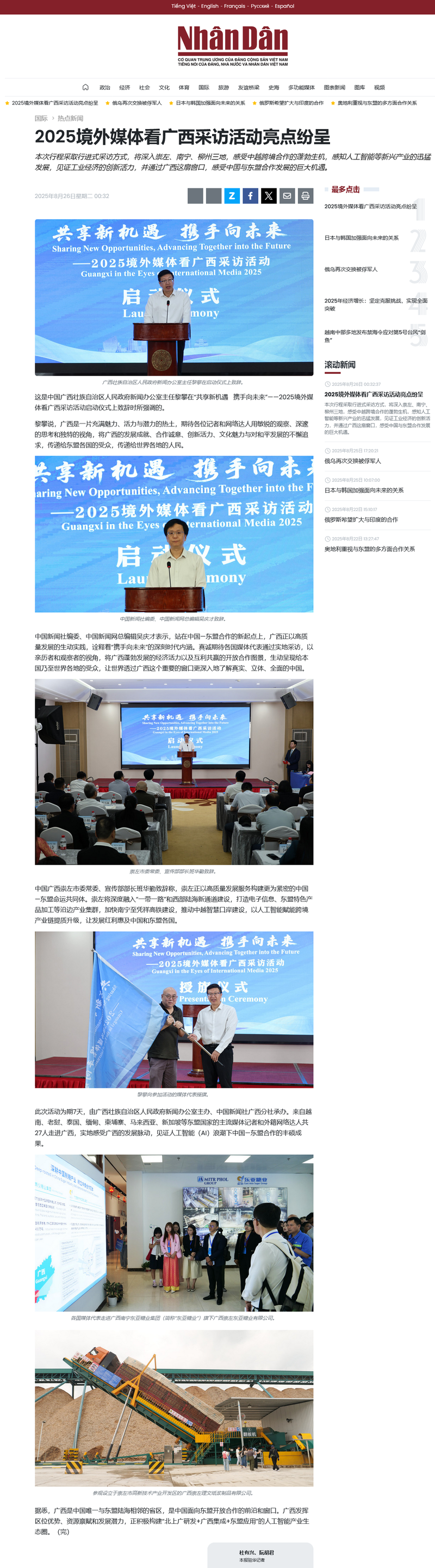 摘要提示:本次行程采取行进式采访方式,将深入崇左、南宁、柳州三地,感受中越跨境合作的蓬勃生机,感知人工智能等新兴产业的迅猛发展,见证工业经济的创新活力,并通过广西这扇窗口,感受中国与东盟合作发展的巨大机遇。