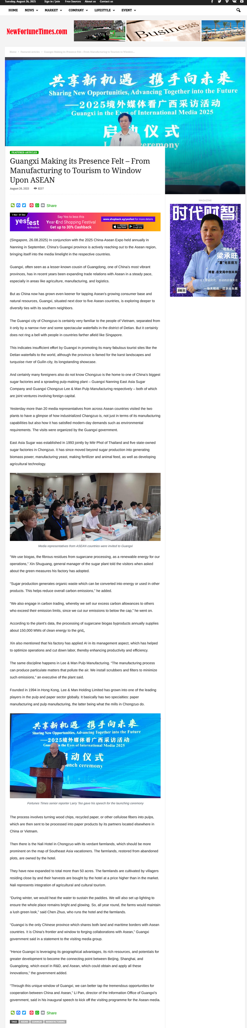 摘要提示:In conjunction with the 2025 China-Asean Expo held annually in Nanning in September, China’s Guangxi province is actively reaching out to the Asean region, bringing itself into the media limelight in the respective countries.
