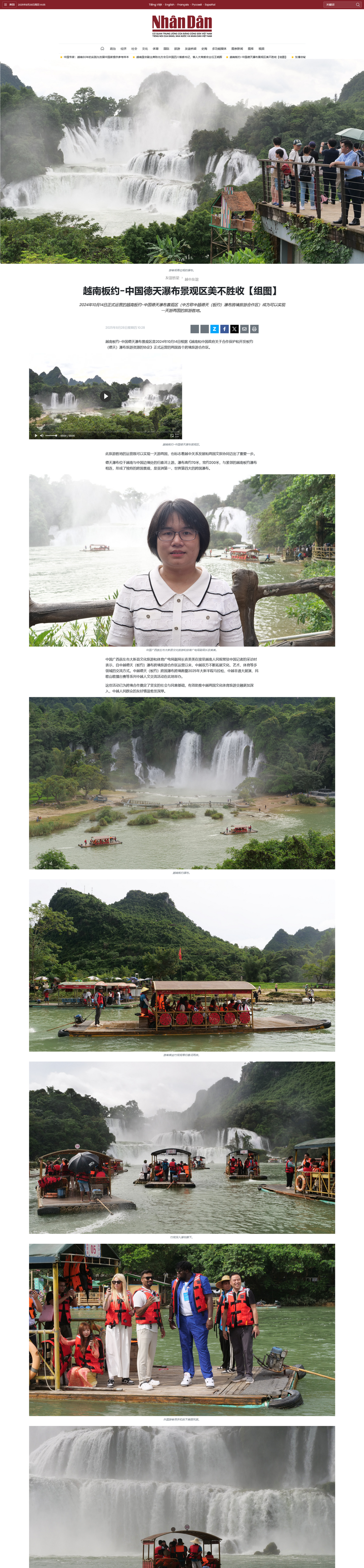 越南板约-中国德天瀑布景观区是2024年10月14日根据《越南和中国政府关于合作保护和开发板约(德天)瀑布旅游资源的协定》正式运营的两国首个跨境旅游合作区。