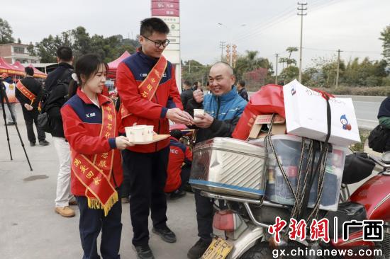 中石化广西石油分公司党委副书记、工会主席徐少梅介绍,2025年是中国石化“情暖驿站·满爱回家”大型公益活动开展的第13年,中国石化广西石油(以下简称广西石油)组织了500名党团员志愿服务队,在春运返乡客流最集中的高速和国道沿途的100座加能站和300余座“司机之家”,为春运自驾司乘人员、卡车司机和返乡摩骑等群体,开展“满爱礼物”“满爱红包”“满爱饺子”等多种关爱活动,为他们提供免费热水、简易维修工具、药品、手机充电、便民用餐服务等“3+10+X”暖心服务,用爱铺就14条冬日暖途,全程服务春运返乡人员。