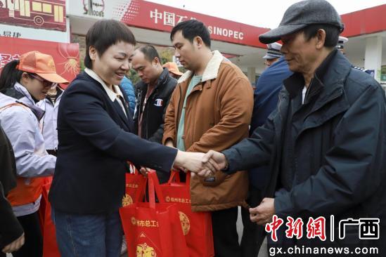 中新网广西新闻1月17日电 (黄莉 毛玉萍)1月14日,春运首日,中国石化“情暖驿站·满爱回家”大型爱心公益活动在广西梧州石油都连加能站启动。