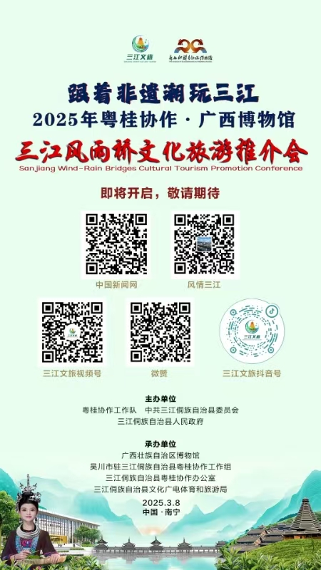 3月8日上午,2025年粤桂协作·广西博物馆三江风雨桥文化旅游推介会,将在广西壮族自治区博物馆举办。