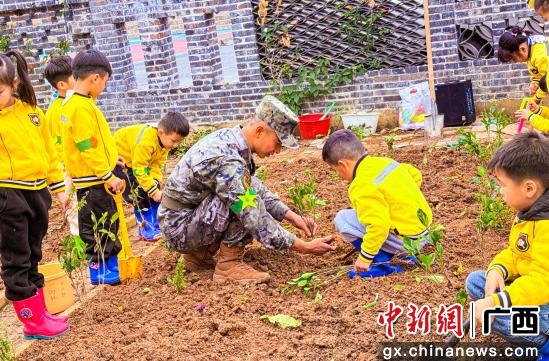 摘要提示:近日,在第47个植树节到来之际,武警广西总队梧州支队、钦州支队、河池支队等组织官兵开展形式各异的植树活动,用实际行动为驻地增添新绿,共建美丽家园。朱辉煌 摄武警钦州支队联合驻地幼儿园开展植树活动河池支队武警官兵准备“梦想胶囊”,将其“种”在自己亲手种植的树苗旁。