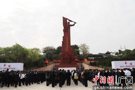 中新网广西新闻4月2日电 4月2日,由广西壮族自治区退役军人事务厅、自治区党委区直机关工委、自治区关心下一代工作委员会、自治区文明办联合主办的“赓续·2025·清明祭英烈”活动,在自治区烈士陵园公祭广场、英烈苑举行。广西和南宁市有关党政机关、企事业单位,南宁市大、中、小学校,烈士亲属和新闻媒体等代表共500余人参加活动。