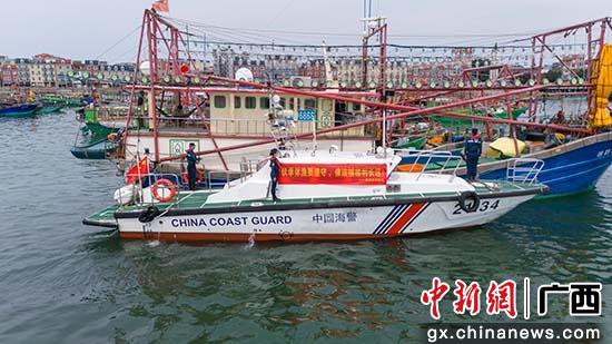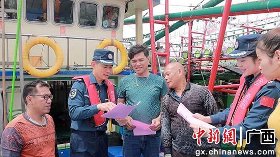 同时,广西海警局派遣执法艇对辖区海域开展常态巡逻检查,通过广播喊话、登临渔船宣讲等方式,督促其按时回港落实休渔期制度。执法员还登上渔船,帮助渔民进行渔船安全检查,确保在外渔船能安全顺利回港。
