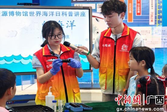 摘要提示:“世界海洋日暨全国海洋宣传日”期间,广西南宁、北海两地同步开展丰富多彩的海洋日系列活动。广西海洋局 供图 此次活动由广西壮族自治区科协、广西大学、广西壮族自治区海洋局等单位联合主办,广西科技馆、广西大学海洋学院、广西自然资源博物馆、广西南海珊瑚礁研究重点实验室、广西海洋研究院共同承办。