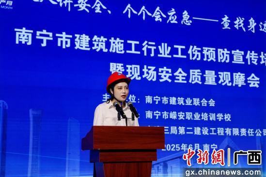 南宁市住建行业党委委员、市建筑业联合会党委书记陈丽冬在启动仪式上致辞表示,南宁市建筑业联合会党委致力于推动党建与业务的深度融合,通过加强党建引领,不断提升建筑施工行业工伤预防宣传培训的效果。在项目施工现场开展工伤预防的集中宣传培训,能够更全面地普及工伤保险政策,有效预防各类工伤事故和职业危害,提升企业职工的工伤预防意识。