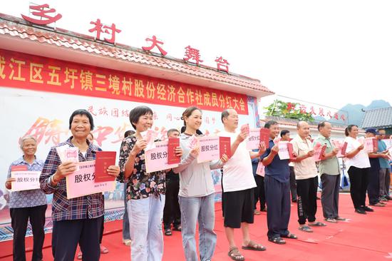 摘要提示:近日,广西河池市金城江区五圩镇三境村村委楼前中心广场人头攒动,处处洋溢着喜悦的氛围,备受全体村民瞩目的股份经济合作社成员分红大会在此举行。