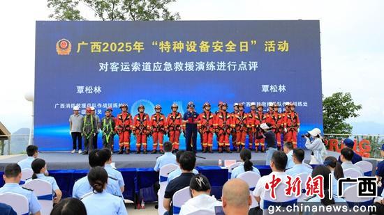 中新网广西新闻7月2日电(杨宗盛 韦朝舜)日前,由广西壮族自治区市场监督管理局联合广西壮族自治区消防救援总队主办的广西2025年“全国特种设备安全日”活动启动仪式暨客运索道应急救援演练现场会在桂林市尧山景区举行。