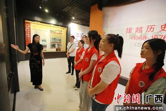 中新网广西新闻7月8日电(伍家琪)桂林理工大学公共管理学院团委副书记封华强一行,日前赴广西壮族自治区南溪山医院开展“青春聚力民族团结 星火闪耀卫国戍边”实践活动,中越学生代表参观了医院院史陈列馆。