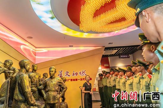 图为新兵们来到广西一大旧址,追随红色脚印。