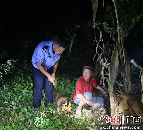 8月26日凌晨,训导员携警犬找到了走失的孙先生。桂林市公安局供图