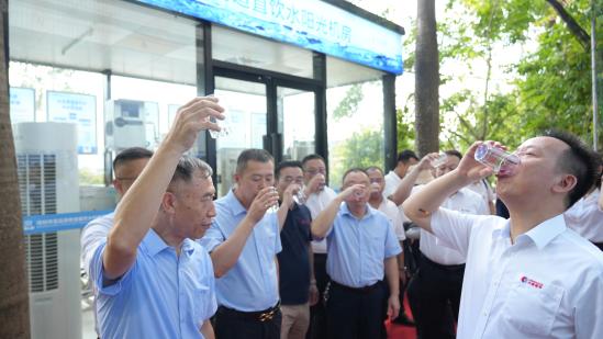 工厂和中燃集团代表品尝直饮水。刘俊杰 摄