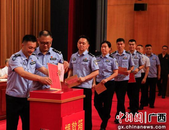 图为桂林市政法系统的领导干部现场为见义勇为事业捐款。杨宗盛 摄