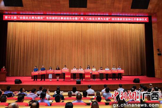 中新网广西新闻9月7日电(杨宗盛 曹长青 段彦伊)9月5日,第十五届“全国见义勇为模范”韦仲谋同志事迹报告会暨广西“八桂见义勇为关爱”项目善款发放和公开募捐仪式,在桂林市会议中心大礼堂举行。