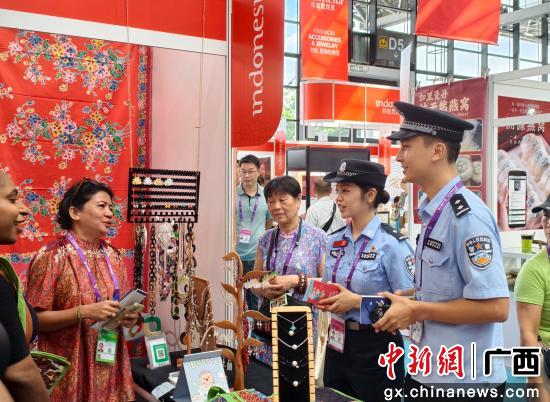 “往年这个服务站点设在会展中心C区行政北楼,距离各展馆有一定距离。今年我们前置服务,把外国人服务站搬到了展厅门前,为外籍客商提供更近距离的便捷服务。”南宁市公安局出入境管理支队民警李思丹说。