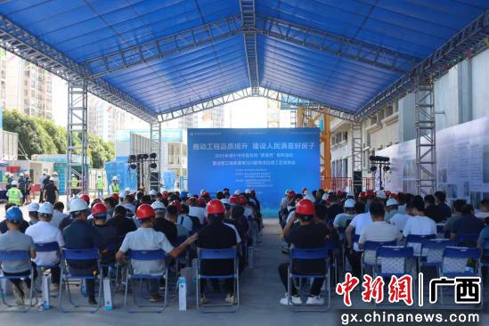 中新网广西新闻9月28日电 (杨陈 邓活生 卢荣喜)9月28日,2025年南宁市住建系统“质量月”系列活动暨住宅工程质量常见问题专项治理工艺观摩会,在中建四局南宁交投荣和樾园项目举行。