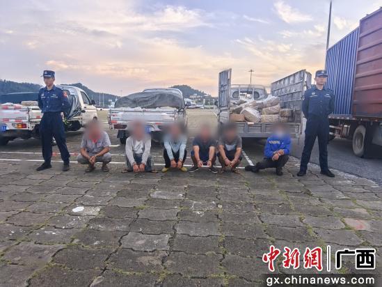 图为涉案嫌疑人及货物。防城港海警 供图
