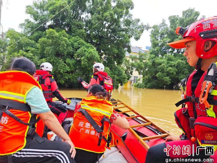 面对险情,崇左消防第一时间赶赴现场开展救援。消防员携带专业装备,深入内涝严重区域,逐户排查搜救,成功将多名群众转移至安全区域。