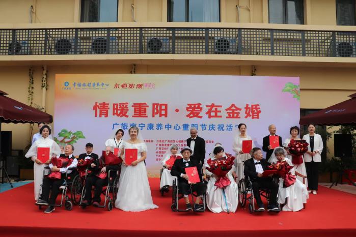 10月29日上午,广旅养老公司在广旅南宁康养中心活力广场举办“情暖重阳·爱在金婚”重阳节主题活动,以一场温馨且厚重的仪式,为长者们送上别样的节日祝福。