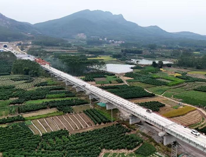 10月28日,由广西交通投资集团投资建设、中建铁投集团承建的柳梧铁路LWZQ-6标覃九塘特大桥架梁完成,标志着柳梧铁路藤县境内16座桥梁架梁任务圆满完成,为柳梧铁路LWZQ-6标年内顺利完成本标段全部架梁任务夯实基础。
