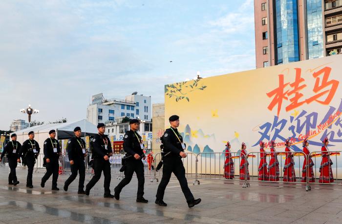 摘要提示:2.3万余名参赛选手沿漓江畔逐风前行,在如画的山水间展开竞技。在这场体育盛会背后,广西桂林市公安局投入大量警力,以严密安保与暖心服务,全程守护赛事平安。