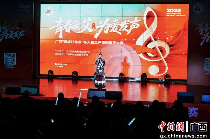中新网广西新闻12月1日电(林浩)11月30日,由广西南宁市疾病预防控制中心主办、广西机电职业技术学院承办的“青春无艾 为爱发声——广西‘绿城红丝带’杯天籁之声校园歌手大赛”在南宁举行。这场融合艺术与健康的青春盛宴,成功地将防艾知识播撒进无数青年学子的心田。