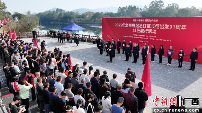 摘要提示:12月1日,广西桂林市全州县千余名民众沿湘江畔徒步7.5公里,开展红色毅行活动,纪念红军长征出发91周年。此次活动以“赓续长征精神”为主题,参与者在行走中重温革命历史,感悟红色精神。