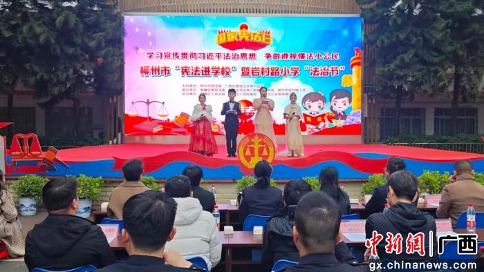 摘要提示:为大力弘扬宪法精神,增强青少年法治意识,广西柳州市鱼峰区人民检察院干警日前带着满满的“法治干货”,走进岩村路小学开展宪法宣传活动。