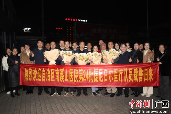 中新网广西新闻12月18日电(伍家琪)12月16日,作为第24批援尼日尔中国医疗队队员,广西壮族自治区南溪山医院眼科医生文美丹、医疗设备管理科工程师韦高、泌尿外科医生丰水强、口腔科医生龙儒举、耳鼻咽喉头颈外科医生李晓亮,在圆满完成为期一年半的援非医疗任务后,顺利回到桂林。