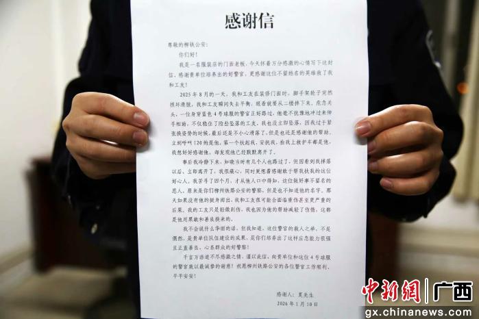 中新网广西新闻1月15日电(谢峥午 敖紫仙 孙赟飞)一面没有收件人姓名、只写着“4号球服警官收”的锦旗,近日“叩响”了南宁铁路公安局柳州公安处的大门。这面“神秘锦旗”背后,是一段被时光珍藏了6个多月的暖心故事,也是一场执着而真诚的“寻恩之旅”。
