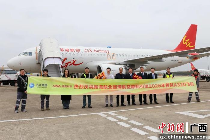 中新网广西新闻2月3日电(黎莉娜)今年1月,新海航北部湾航空迎来新年首架空客A320飞机,注册编号B-32QU。该机于近日正式投入运行,首班执飞GX8865(南宁—徐州)航班,以崭新运力迎接春运客流高峰,也为“十五五”规划开局之年的航空运输保障注入新动力。