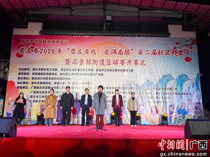 中新网广西新闻2月7日电 (凌彩艳)近日,崇左市“崇左有我·爱满南疆”第二届社区邻里节暨石景林街道篮球赛开幕式举行,旨在进一步巩固和拓展社区邻里节品牌影响力,持续推动邻里互助、民族交融、社区共建,营造团结、和谐、文明、活力的社区氛围。