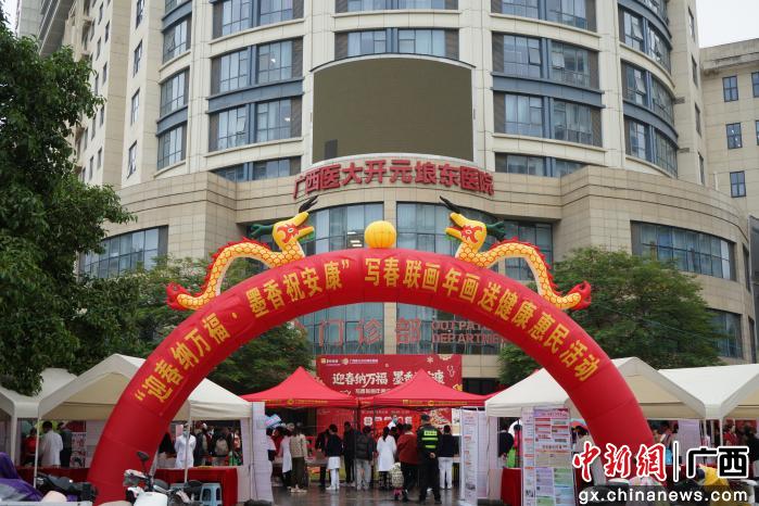 中新网广西新闻2月13日电 (梁琳 林浩)2月12日,“迎春纳万福墨香祝安康”新春惠民活动在广西南宁市举行,参与者们在欢歌笑语中辞旧迎新,在健康服务里感受温情。
