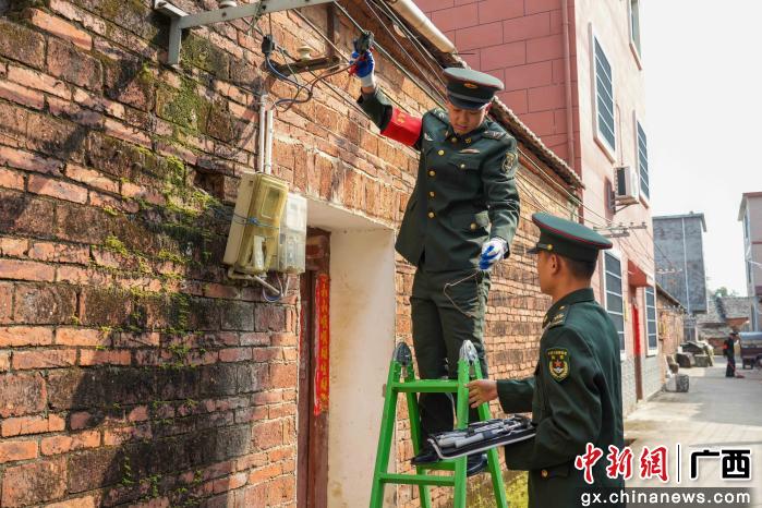 图为部队官兵整治用电安全隐患。刘俊磊 摄