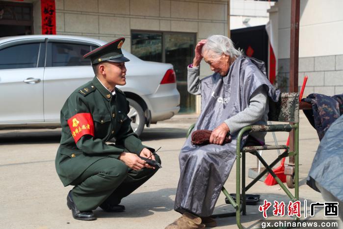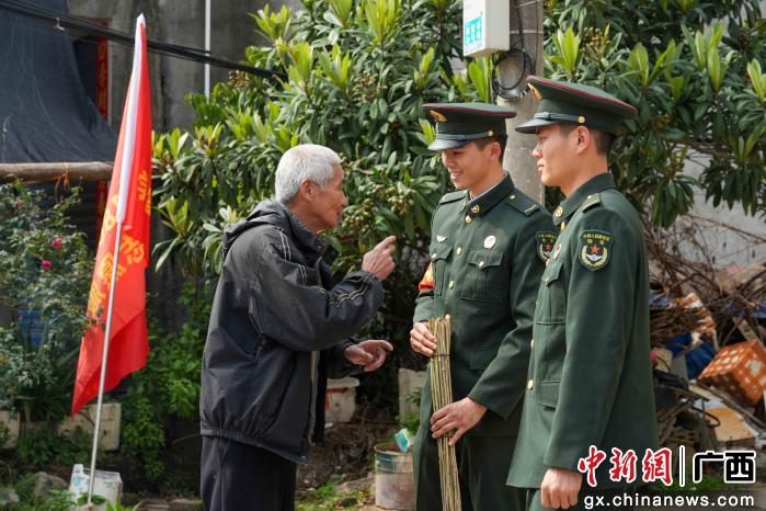 图为部队官兵与老人亲切交谈。熊勖希 摄
