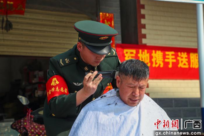 图为部队官兵为民众理发。熊勖希 摄