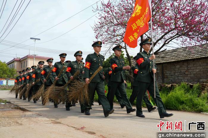 图为部队官兵整齐列队前往村庄展开活动。刘俊磊 摄