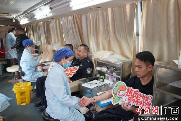 中新网广西新闻3月18日电 (黄秀娟)近日,一辆献血车驶入崇左市公安局大院,来自市公安局各警种部门的民警辅警有序登上献血车,以“一臂之力”为生命接力。