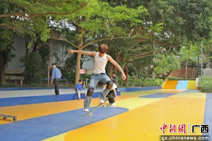 图为民众在南宁民生广场滑板公园运动。南宁交投集团供图