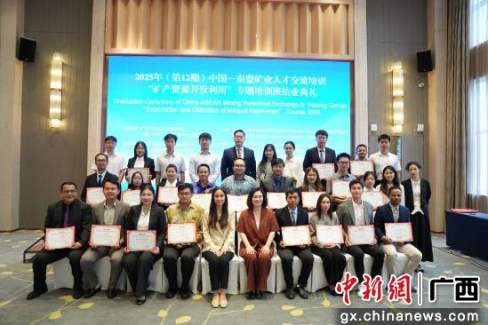 中新网广西新闻6月6日电(植小敏 谢安芝 邓科南)日前,2025年(第十二期)中国—东盟矿业人才交流培训“矿产资源开发利用”专题班在南宁结业。来自中国与东盟国家的23名学员完成为期3周的专题学习。